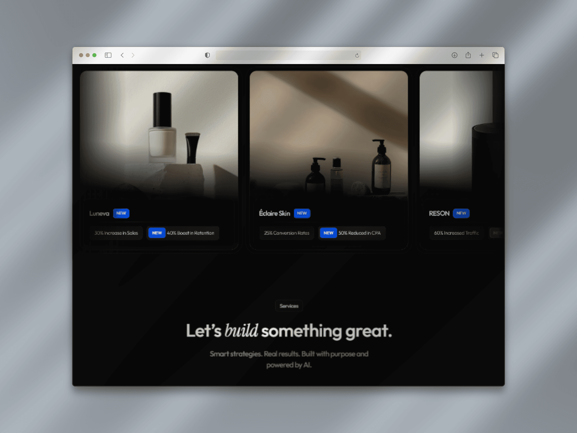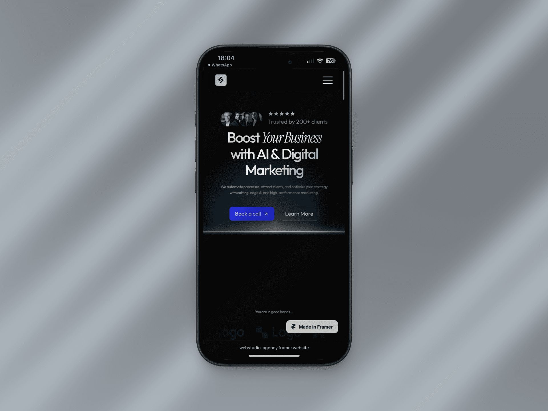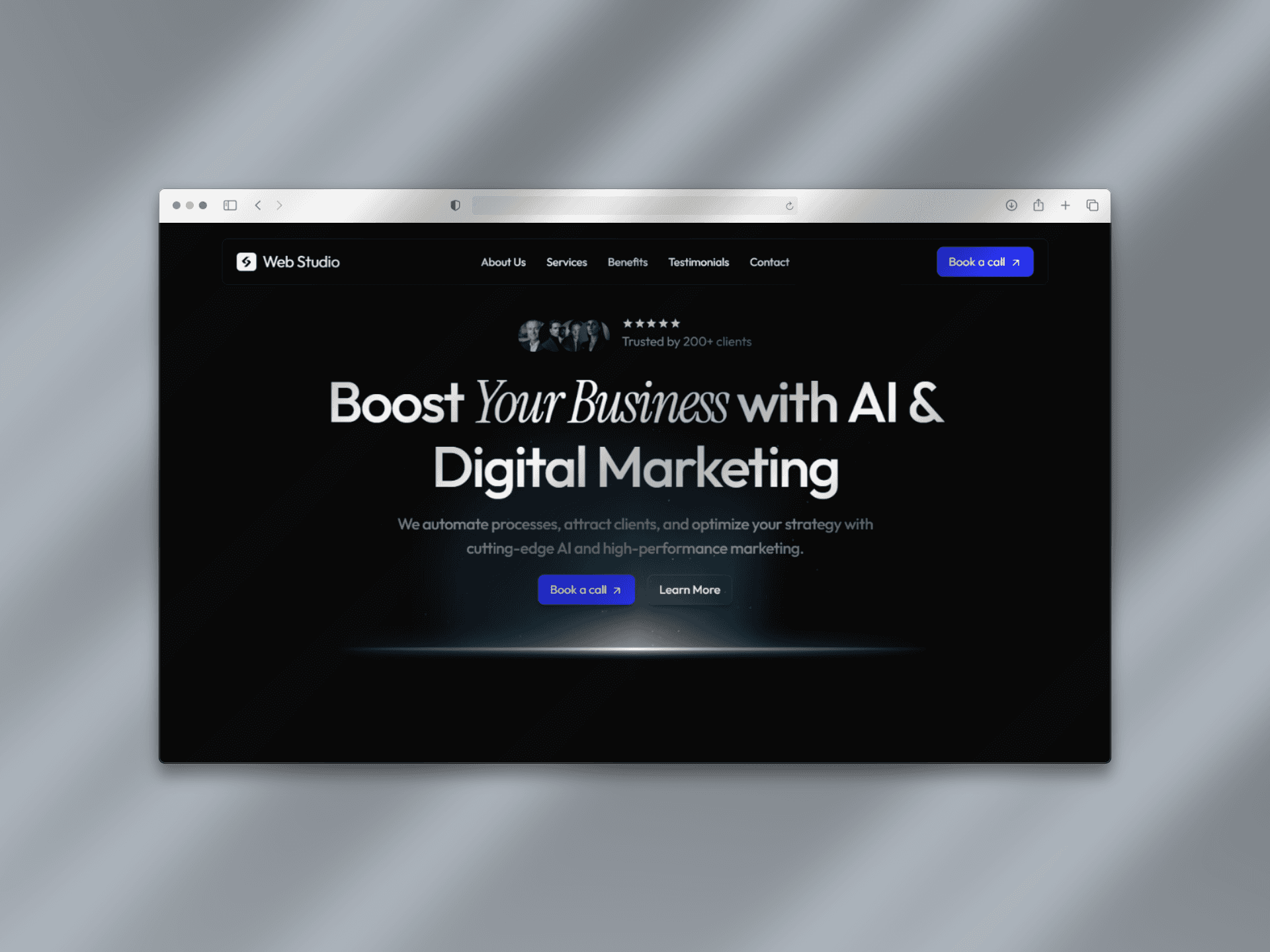 For Web Studio, a marketing and AI agency, we designed and developed a website that reflects their innovative and forward-thinking spirit. The project combined a clean, modern interface with dynamic interactions, ensuring a seamless user experience that communicates both creativity and technological expertise.